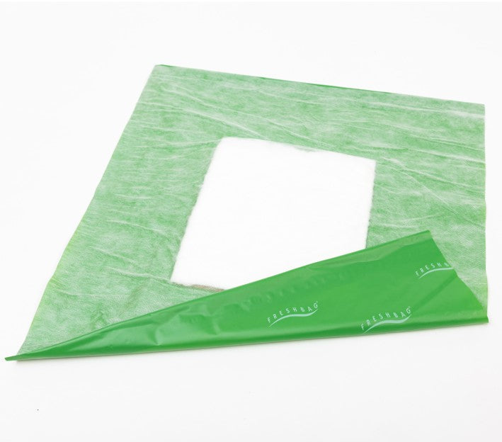 Durch die sauber verschweißten Nähte und die wasserdichte Außenhaut ist der FRESHBAG® zu 100% auslaufsicher. Loses Wasser im Inneren des FRESHBAG®s wird durch das wasserspeichernde Vlies vermieden.